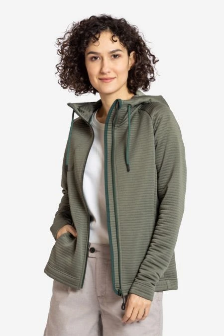 Die aus bluesign® zertifiziertem Doubleface Fleece-Stoff hergestellte Fleecejacke DAYBREAK überzeugt durch einen sportlichen Look, viel Funktion und Nachhaltigkeit. Mit leichtem Futter im stylischen Streifenrelief sorgt die Jacke für ein gutes Körperklima. Die Damen Fleecejacke mit normaler Passform ist leicht tailliert, mit einer Kapuze mit innenliegendem Kordelzug versehen und mit zwei seitlichen Einschubtaschen ausgestattet.
