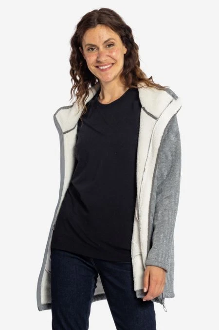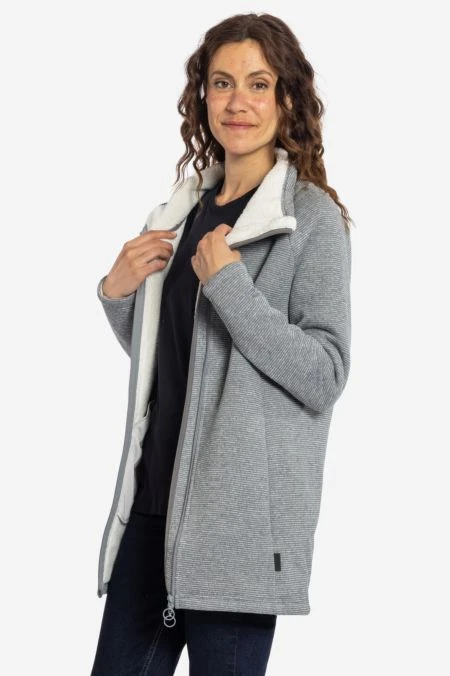 Einfach ein bisschen länger draußen bleiben. Mit dem wärmsten Fleecemantel unserer Kollektion ist das ganz einfach. Der melierte Damen Strickfleece-Mantel MYSTERY mit legerer Passform ist innen komplett mit cosy Teddyfleece gefüttert. Der hohe Stehkragen ist voluminös, etwas oversized und macht es dir leicht, dich wirksam vor Kälte zu schützen. Der 2-Wege-Zip ermöglicht dabei jederzeit den besonderen Elkline-Tragekomfort.