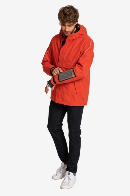 - Ärmel mit verstellbarer Saumweite und innenliegendem elastischen Bündchen mit reflektierendem Abschluss