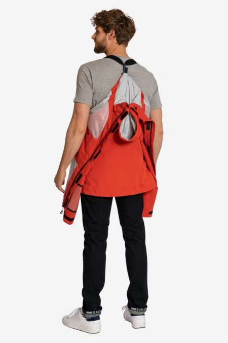 - innenliegende „Rucksackstraps“, um die Jacke auch bequem unangezogen zu tragen