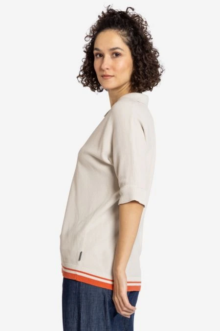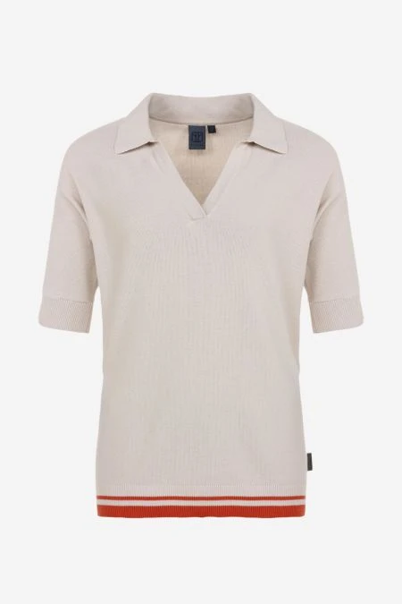 Modischer Kurzarm-Strickpullover in sommerlichem Polo-Shirt-Look. Die eingesetzte, qualitativ hochwertige Bio-Baumwolle, sorgt in Form von einem leichten Reiskorngestrick für einen lockeren Fall, die nahtlos angestrickten Ärmel für perfekten Tragekomfort. Der Rippstrick an Kragen und Säumen unterstreicht die sportliche Note vom TEED UP. Dezenter Hingucker: die farblich abgesetzten Streifen am Bundabschluss.