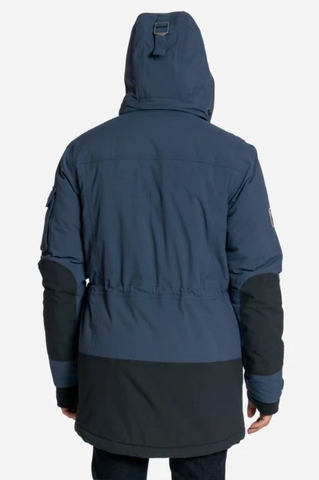 Dieser superwarme Winterparka hat 11 Taschen und eine vertikale Regenrinne. Eine was? Ja! Die Regenrinne ist nur eins der vielen cleveren Details dieser wind- und wasserdichten Winterjacke. Sie verdeckt den Front Reißverschluss und sorgt dafür, dass schräger Regen abläuft. Die perfekte Ergänzung zur atmungsaktiven Membran und komplett versiegelten Nähten, also allem, was deine Jacke wasserdicht macht. Das ist REAL STUFF für Männer, die die Kälte lieben – aber nicht gern frieren! Passt ins Winter Camp nach Island, auf dem Bike ins Büro oder mit Freunden im Forst. In diesem Parka lehnst du noch relaxt am Baum, wenn deine Kumpels schon mit den Zähnen klappern. Hergestellt in nachhaltiger Elkline Qualität: Der Oberstoff ist bluesign® zertifiziert, die Membran lösungsmittelfrei, Innenfutter und Wattierung sind aus recyceltem Polyester.